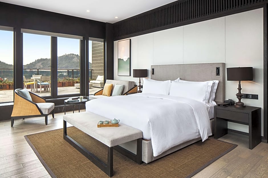 These 78-square-yard suites offer a spacious balcony with views of Dongqian Lake and Executive benefits. The private bathroom offers electric bidet and modern designs.